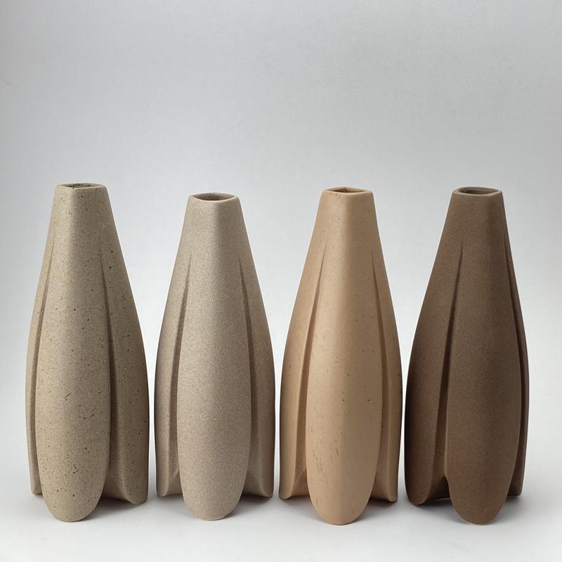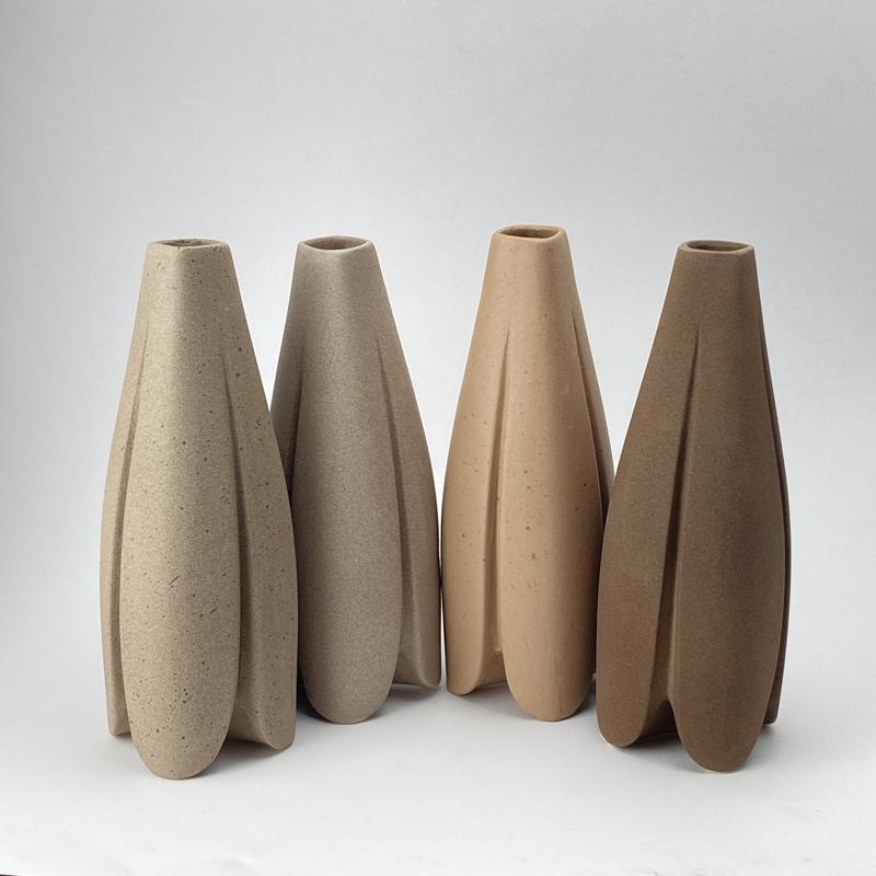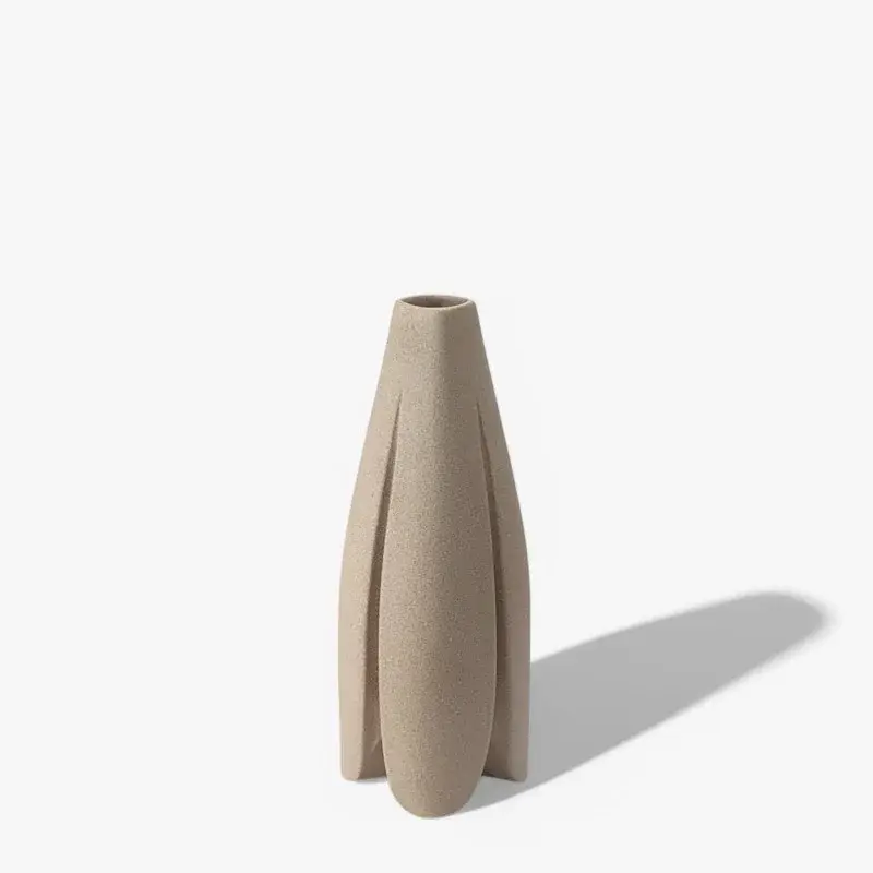Inspired by the graceful transformation of a leaf from bud to decay, each vase in this collection embodies a stage in this evolutionary journey. From the delicate emergence of new life to the vibrant hues of autumn and the quiet resilience of decay, our vases capture the essence of nature’s cycle. With intricate details and organic shapes, these pieces bring a touch of natural charm and sophistication to any space, inviting you to embrace the beauty of impermanence and the enduring cycle of renewal N11 Dark Beige, N22 Mustard, N23 Green, O17 Brown