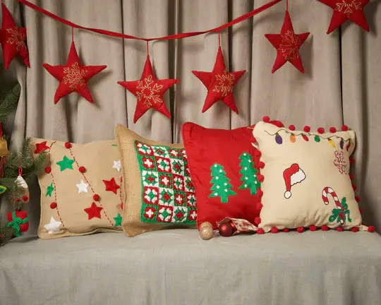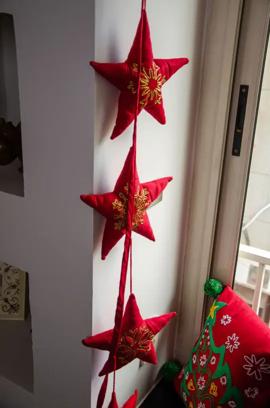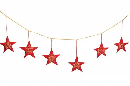 Christmas Decoration Banner with dangling embroidered stars with fiber filling