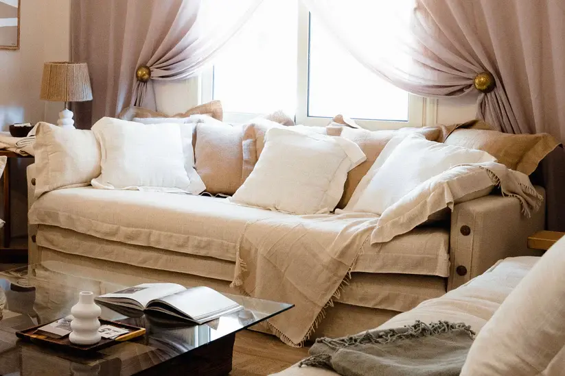 Imagine sinking into a luxuriously cozy sofa adorned with linen fabrics, inspired by the soothing aesthetics of Nuba, creating an atmosphere of ultimate relaxation.