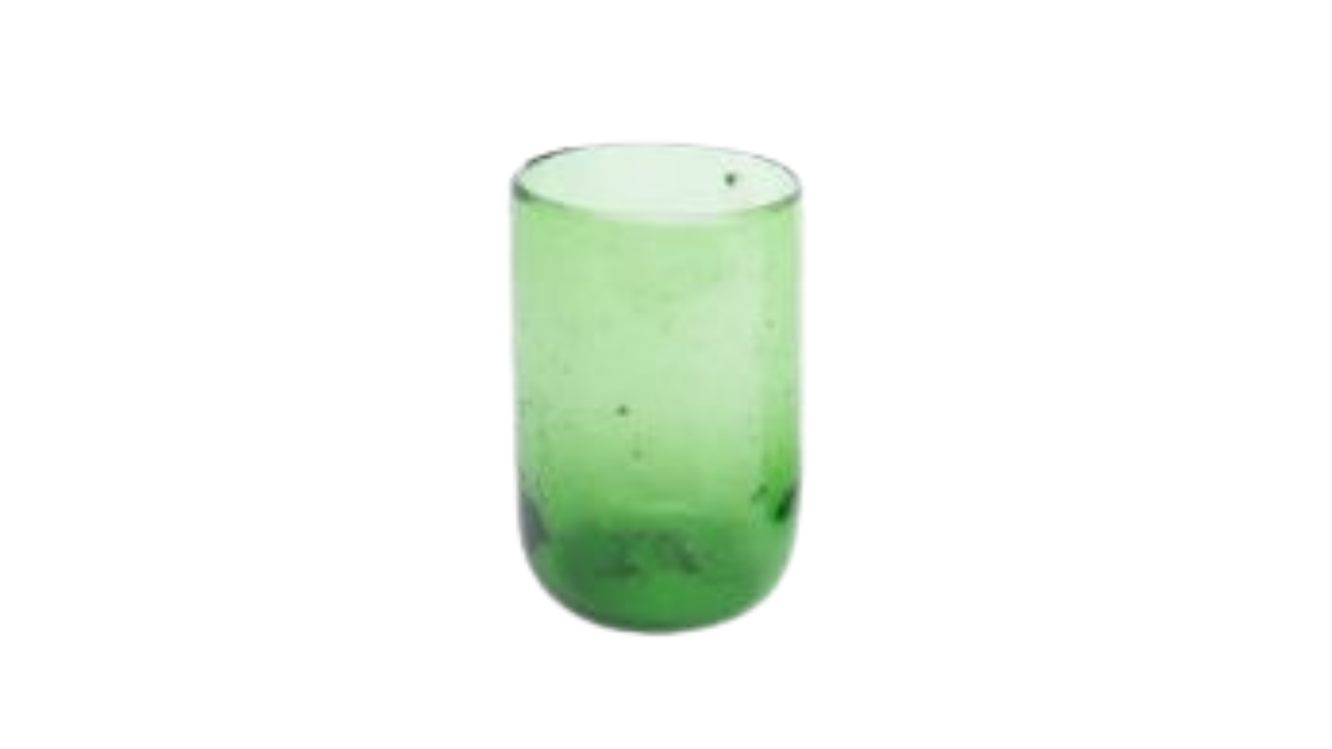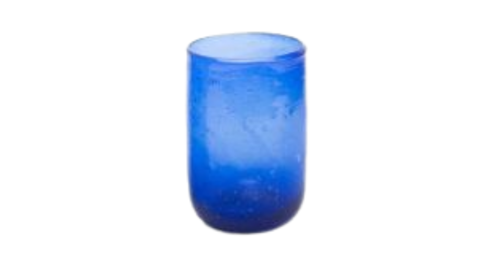 Today, Cairo’s glassblowers have taken a more sustainable approach to the craft. This is through collecting used bottles from around the city, washing, sorting, breaking and melting them in a 1500 degrees Celsius kiln and finally mouth blowing them into a variety of shapes to create imperfect forms with tiny bubbles that represent the Material’s once liquid state.
