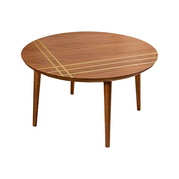 Material: walnut veneer with lines in brass paint.