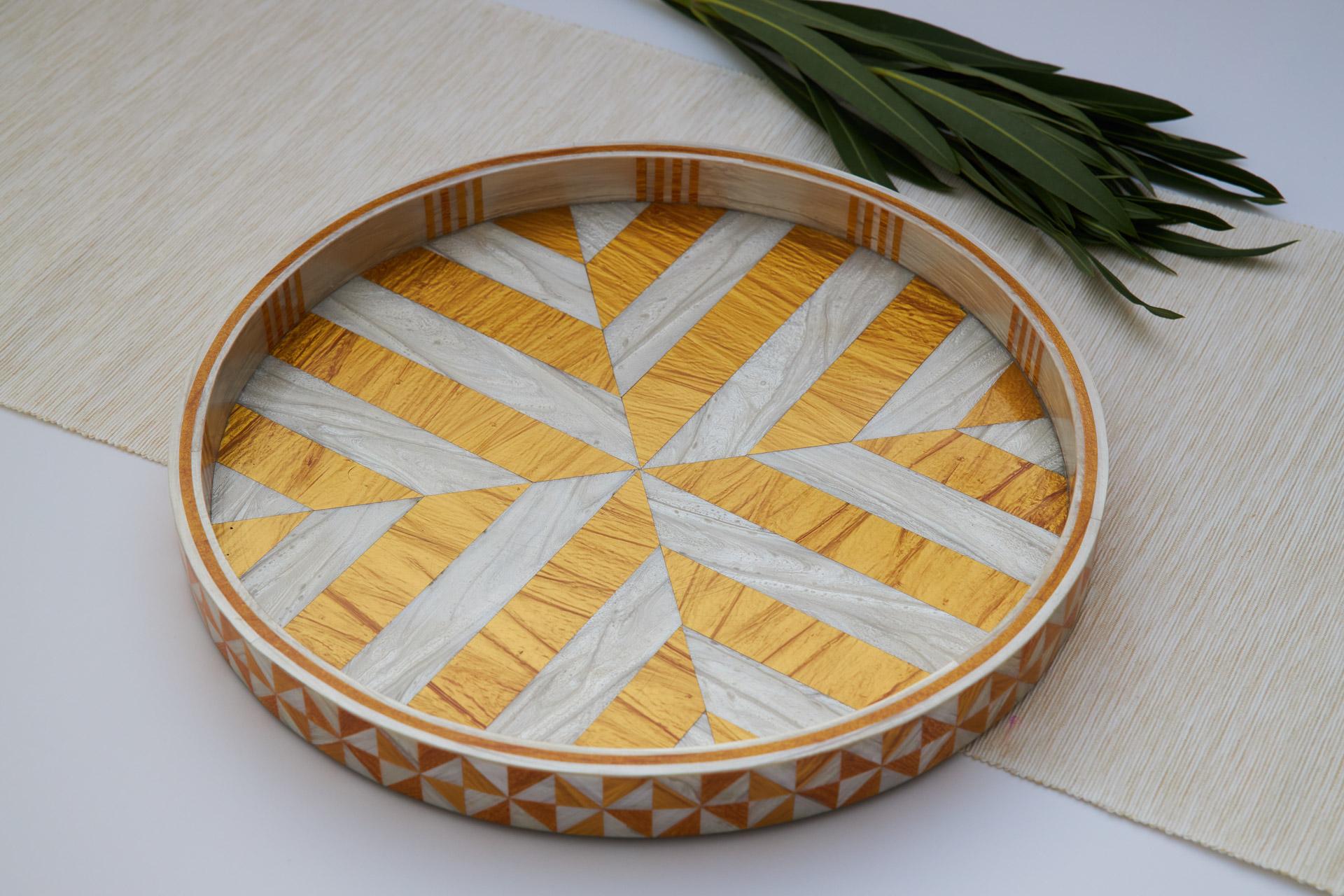 Highest quality of wood with glossy finish inlaid with mixture of mother of pearl and acrylic Color : Black , Gold Measurement : 36 , 45