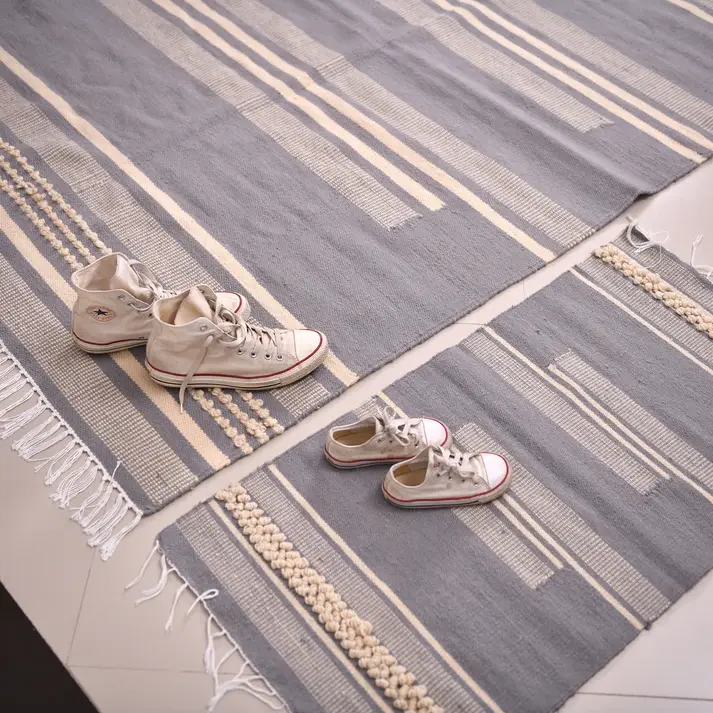 A simply stripped design with beveled woven stripes to add the hand weaving value to the piece.