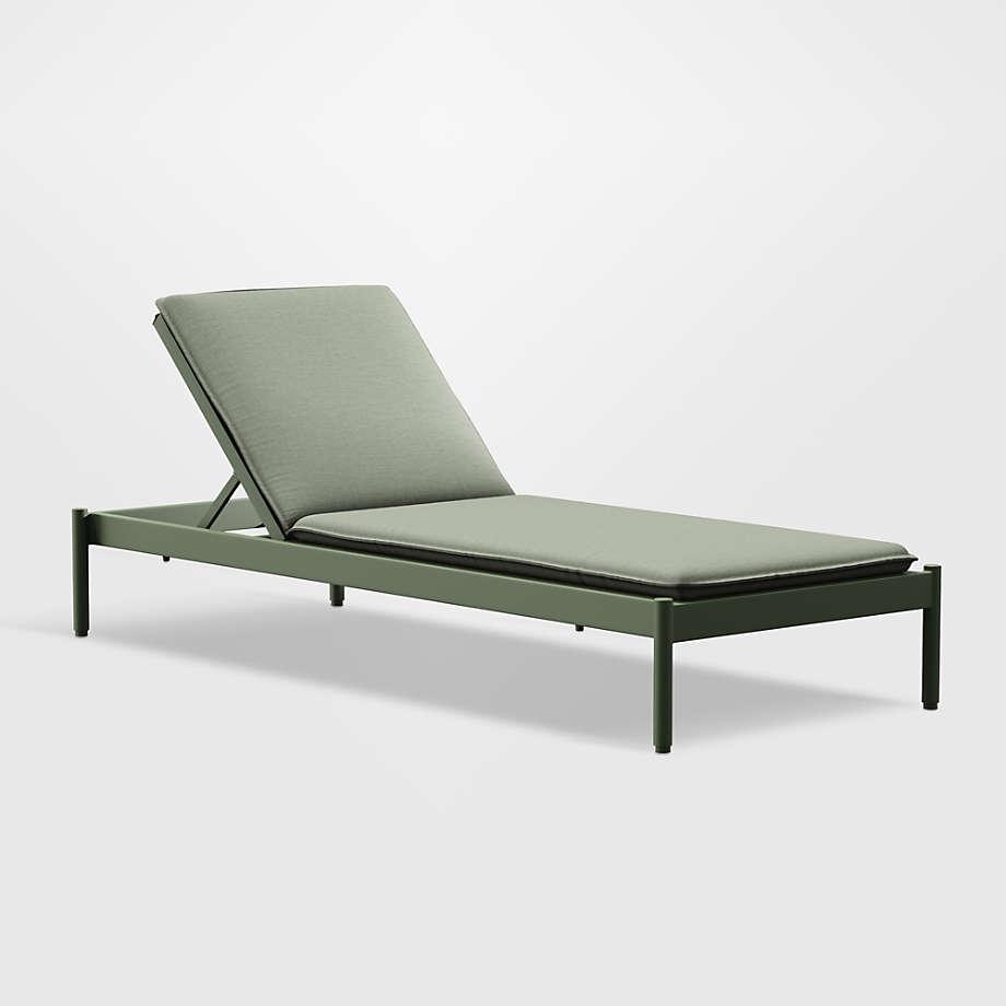 Minimalist in design, maximal in comfort. This set of sleek loungers relaxes with pillowy cushions neatly tailored with self-welting in weather- and fade-resistant Sunbrella fabric. The aluminum frame matches the cushion's olive green tone with a matte finish in durable powdercoat. Made for lounging, the lightweight chaise lounges adjust to three levels of recline.