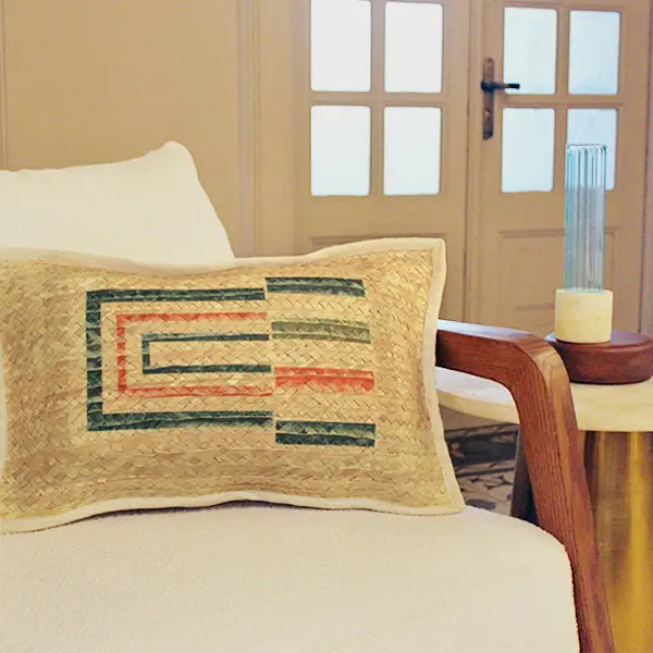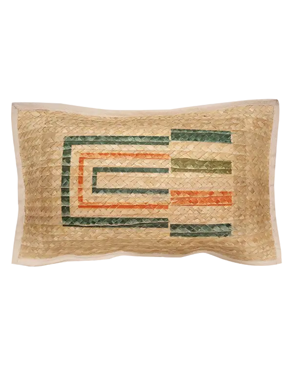 Dimensions: 50×30 cm Each khoos cushion is individually hand formed. Therefore, each is individually unique and has slight variations. Khoos is traditionally made of palm leaves; it is light yet sturdy. Origin: The ancient Egyptians, ever resourceful, were creating khoos furniture by around 3000 BC, using the bladed grasses so ubiquitous on the banks of the Nile and so strong when dried. These were used to produce some of the most beautiful intertwined furniture items the world has ever known.
