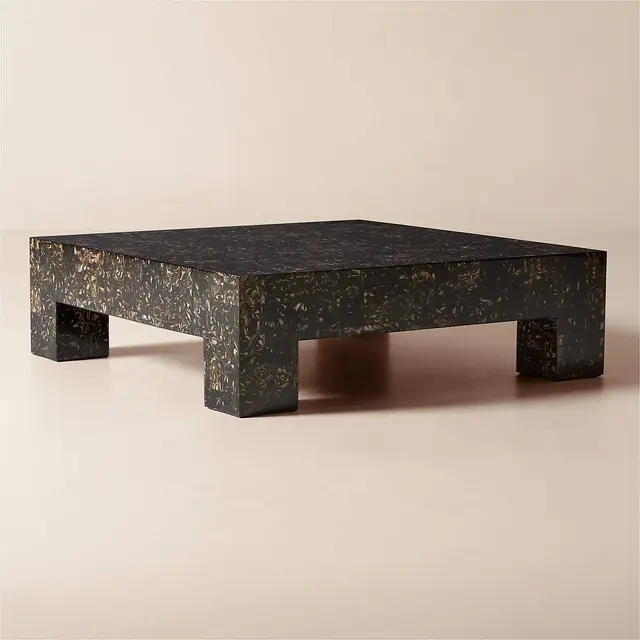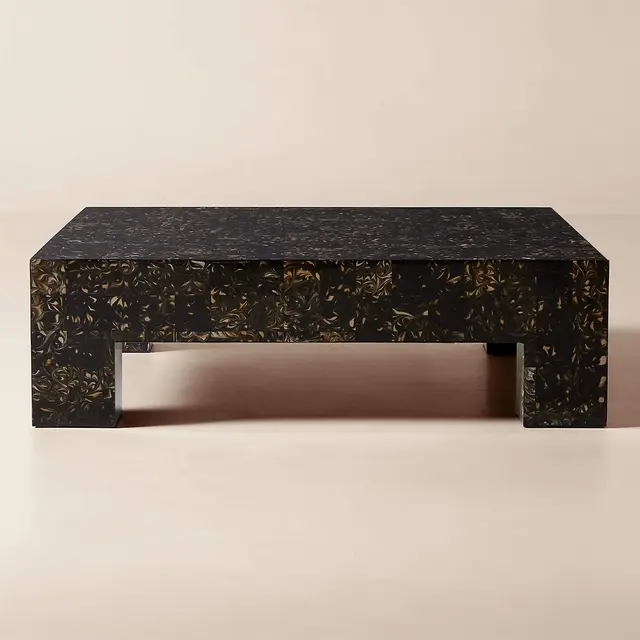 Checkerboard parquetry detail on the tabletop has a mitered solid wood frame, creating a seamless appearance.