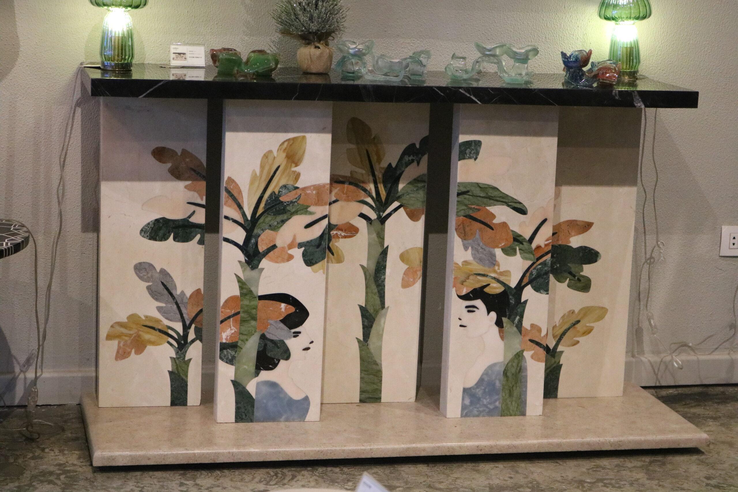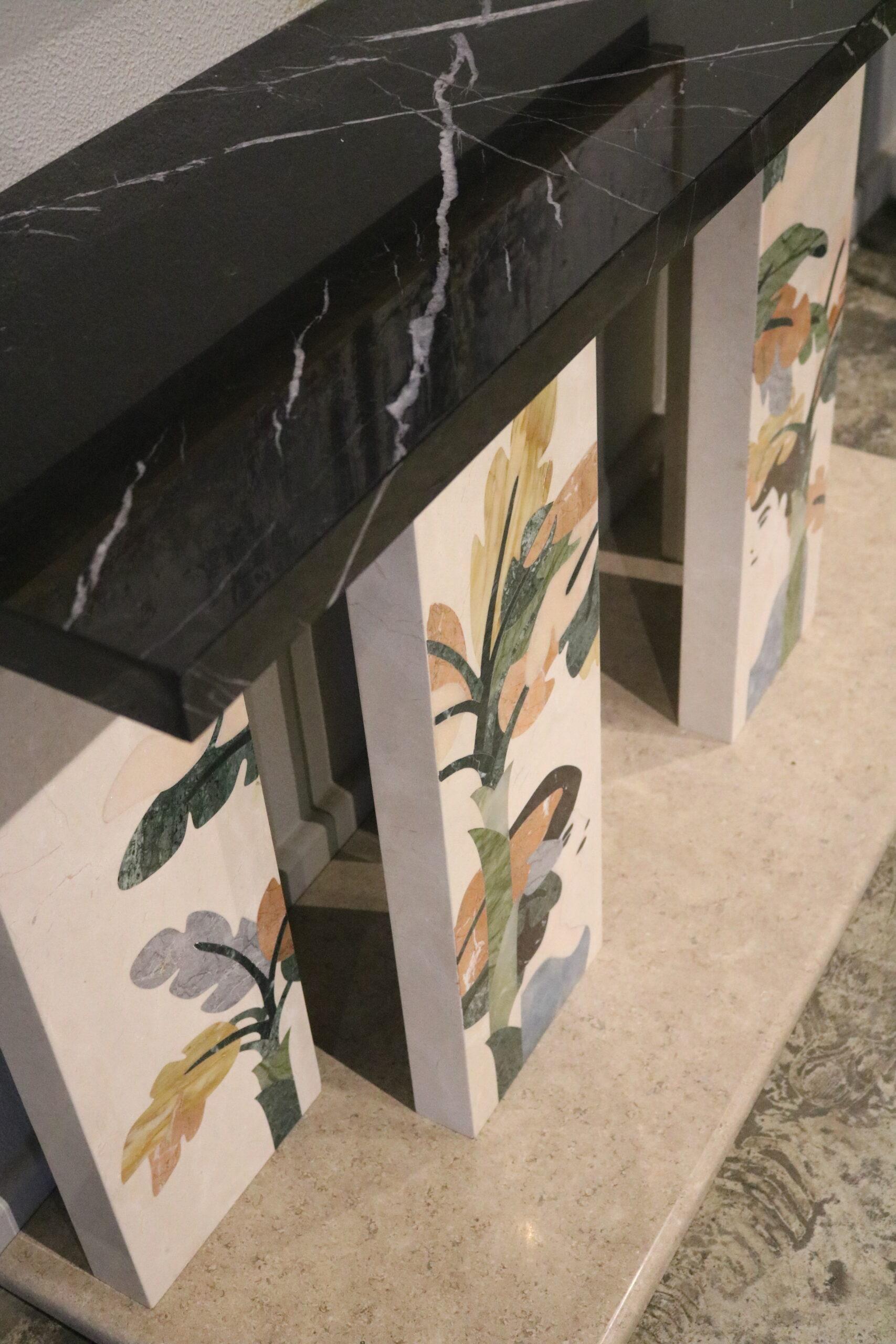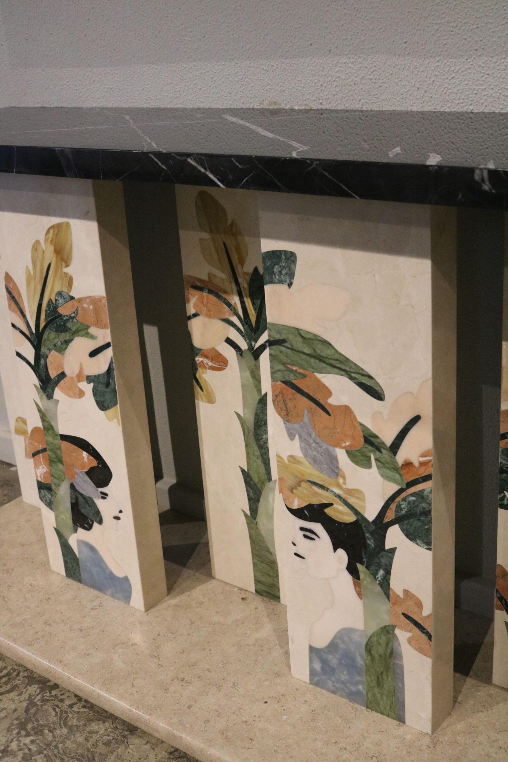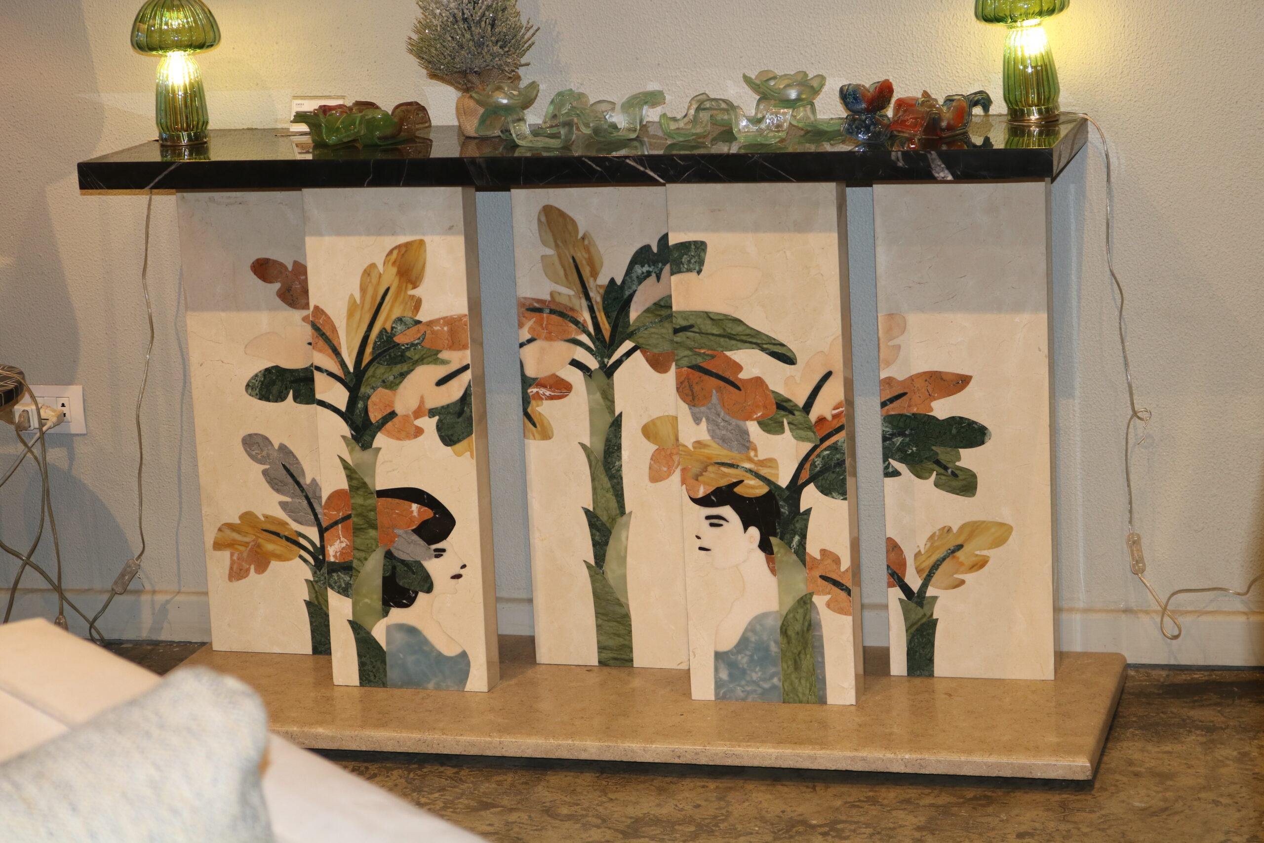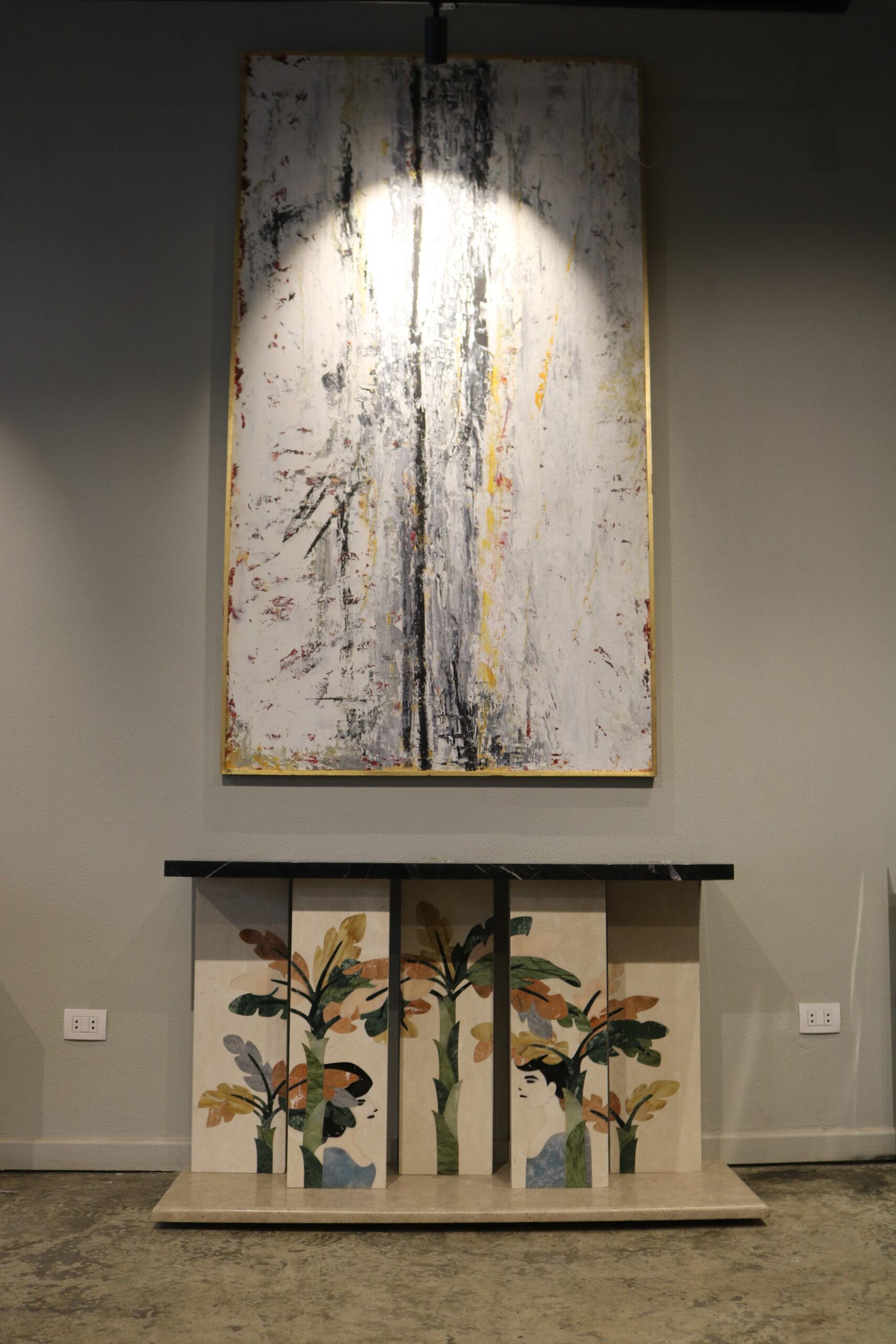 High-gloss colored lacquer/black-painted metal/black glass In collaboration