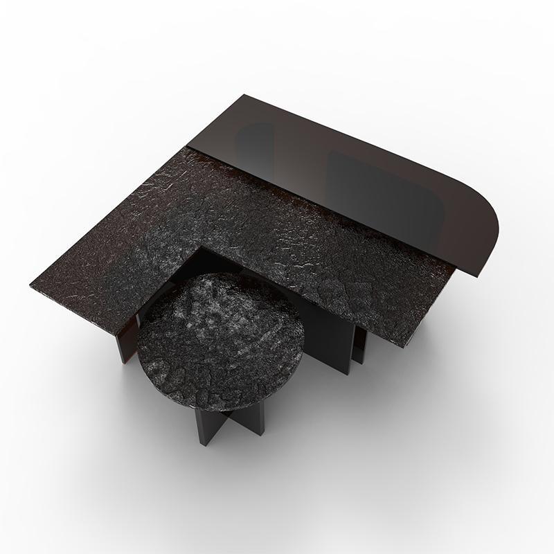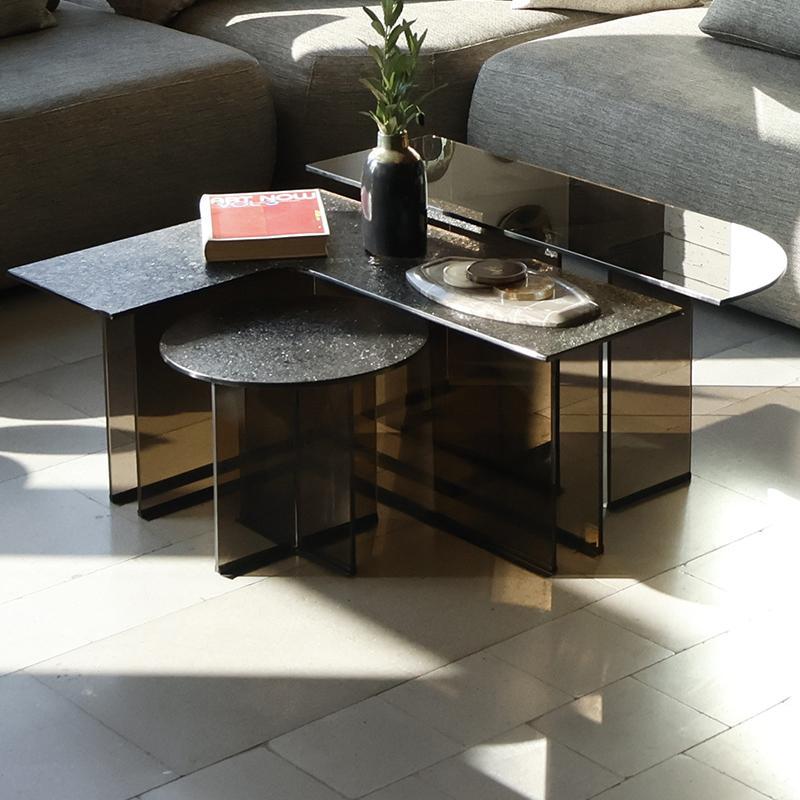 3 Sets of Coffee Tables made in Glass, textured and plain. You can play around with the placement and texture