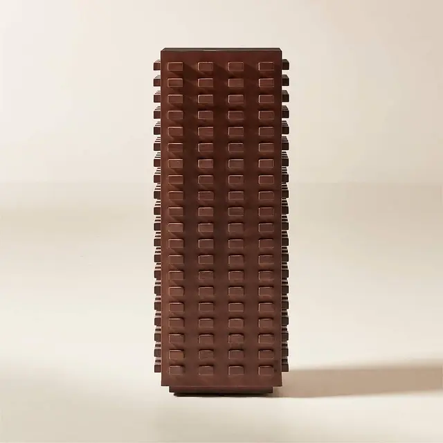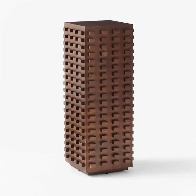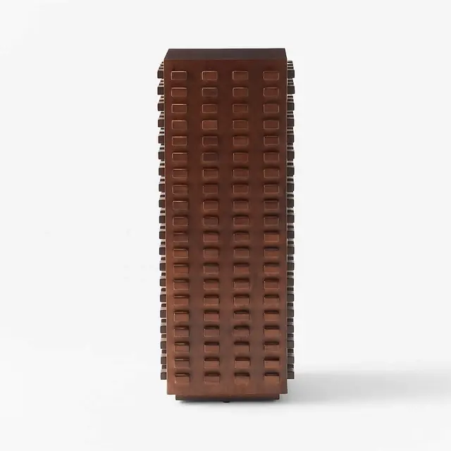 Designed by Sandra Githinji, acacia wood table pairs traditional African architectural details with a modern pedestal-style silhouette. "Toron references the traditional architecture of the African peoples as its facades are decorated with bundles of rodier palm sticks called 'toron' that project away from the wall as a type of scaffolding," explains the designer. Acacia wood has been stained for a dark, powerful presence while still retaining its organic character, creating a one-of-a-kind piece with timeless appeal.