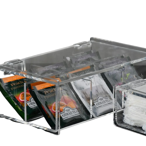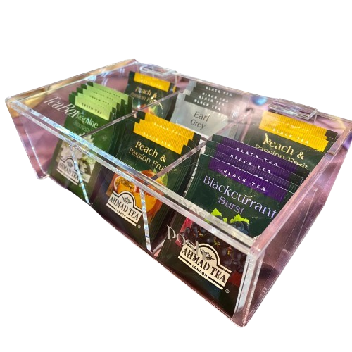 Acrylic tea bag organizer box 6 sections is the best way to organize and display tea bags