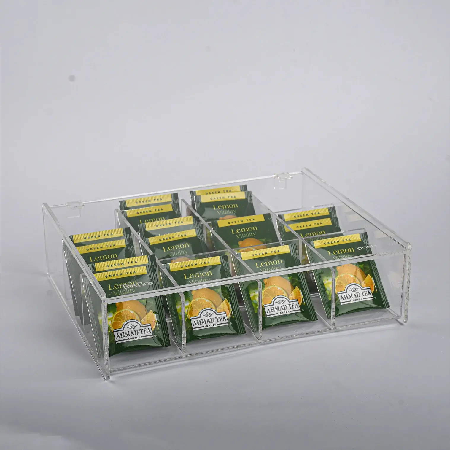 An acrylic tea bag organizer box, 12 sections, is the best way to organize and display tea bags