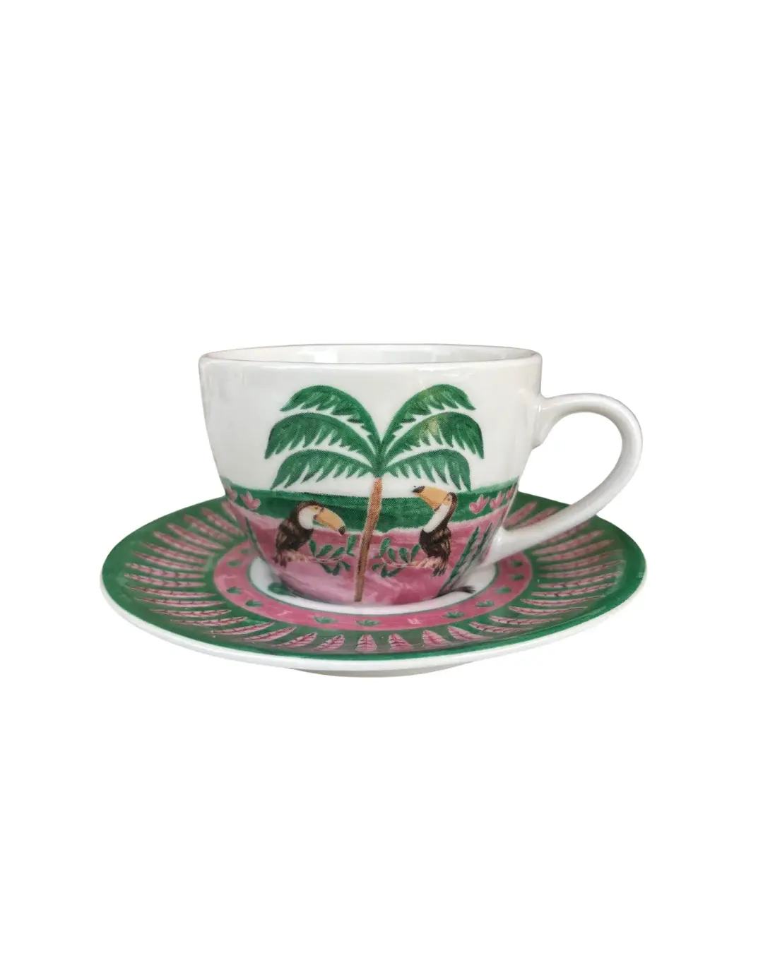 This tropical-themed coffee cup takes you to lush rainforest and a dreamy tropical escape. A simple companion for the moments that matter.