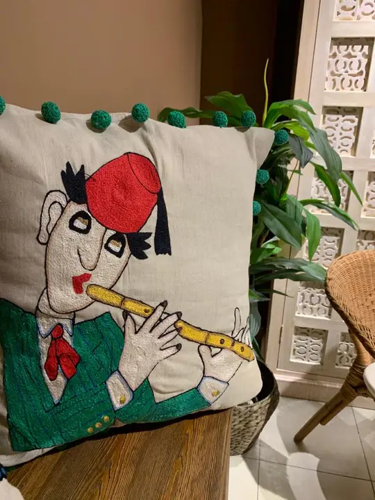 Linen Musicians cushion (Flute) Size: 49x51cm