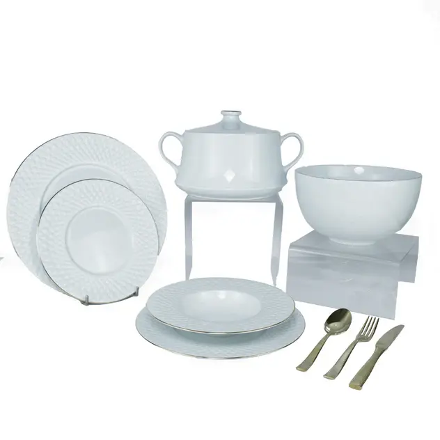 Set of 21 Pieces: 6 Dinner Plates (27cm), 6 Dessert Plates (23cm), 6 Deep Plates (23cm), 1 Serving Plate (31cm), 1 Serving Bowl (23cm), 1 Soup Tureen with Lid. Tu-3500go-set.
