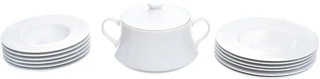Set of 13 Pieces: 6 Dinner Plates (27cm), 6 Deep Plates (23cm), 1 Soup Tureen with Lid. Tu-8600-set.