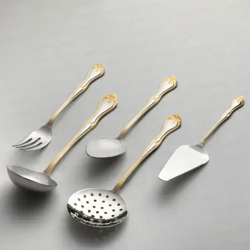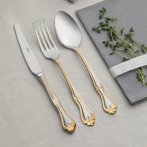 Infuse your mealtimes with sparkle thanks to our 89-piece cutlery set, crafted from stainless steel. The elegant handles adorned in gold add a touch of chic to any special occasion. Say goodbye to mismatched utensils and elevate your dining game with this brilliant set. Hosting a fancy event? Make sure to impress your guests with our 89-piece stainless steel cutlery set, complete with striking golden handles.