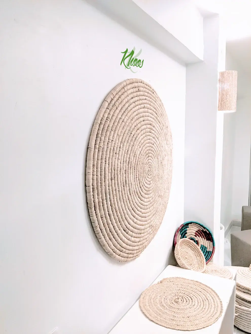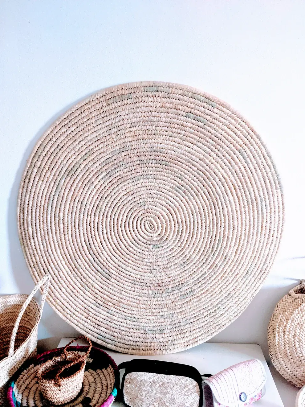 dd rustic charm to your home with our handwoven palm leaves wall decoration. This large, circular piece features intricated coil patterns, perfect as a focal point in any room. Crafted from natural palm leaves, it complements various interior styles, bringing warmth and texture to your space.