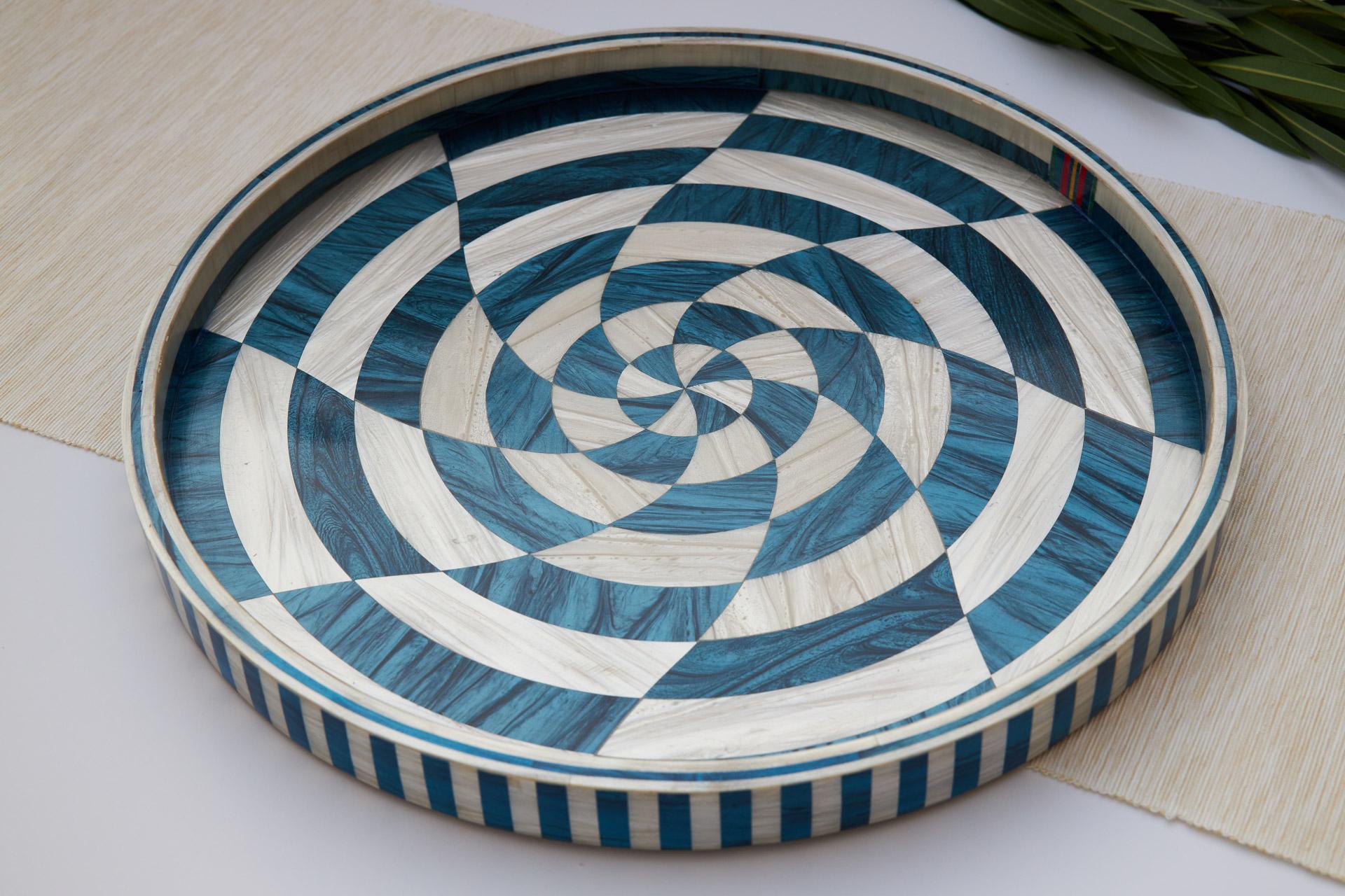 Highest quality of wood with glossy finish inlaid with mixture of mother of pearl and acrylic Color : Blue Measurement : 36 , 45