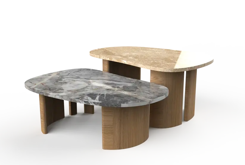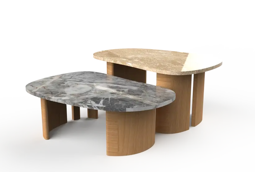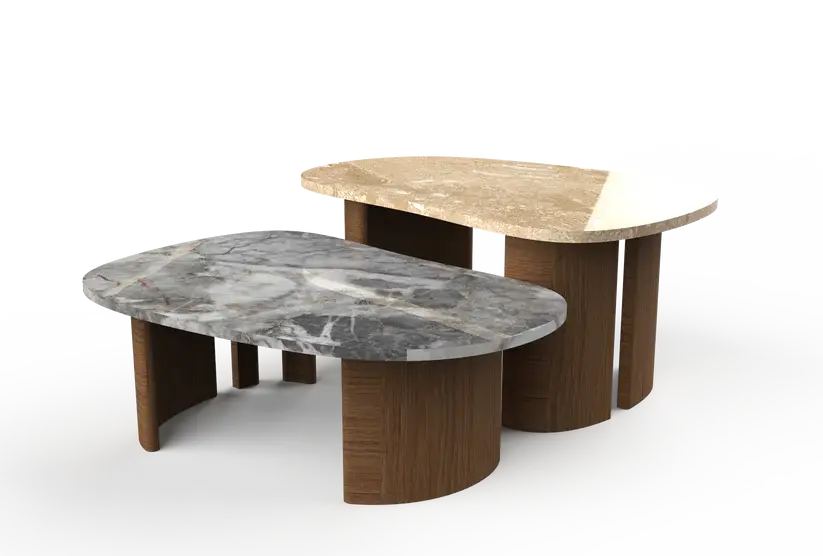 Marble top coffee table with curved wooden legs, this coffee table adds a touch of sophistication to any living space