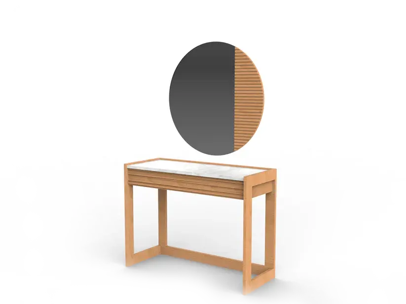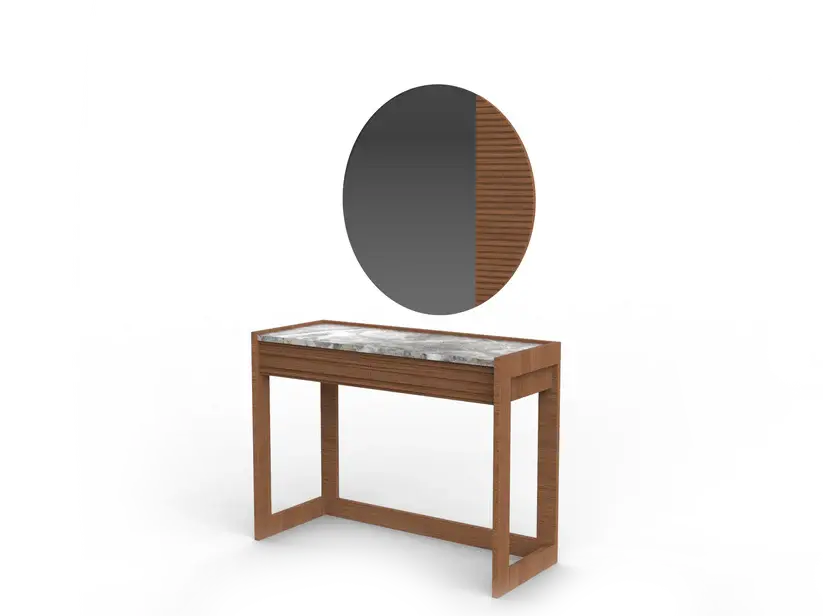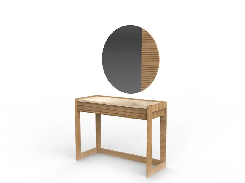 Elevate your morning routine with the luxurious Wind Makeup Vanity. Featuring a sleek round mirror and elegant marble top, this vanity adds a touch of sophistication to any bedroom or dressing room. Get ready in style and feel confident with a flawless makeup application every time.