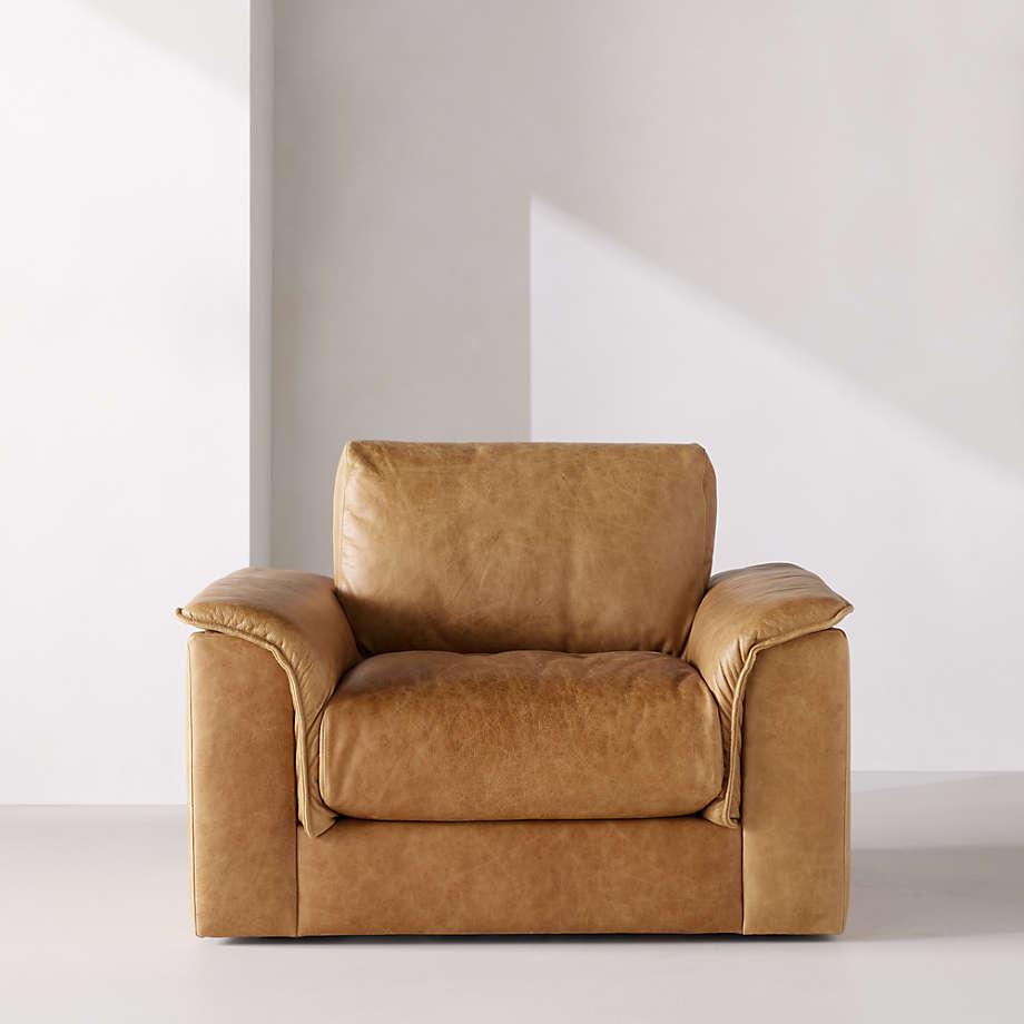 Channeling the glamour of swanky clubs and luxe hotel lobbies, our vintage-inspired Wythe chair indulges with a sink-in seat and silky leather. Plush cushions and wide armrests draped with duvet-like pillows give the generously proportioned chair its casual, lived-in feel—an appearance enhanced by the rustic appeal of the leather upholstery. Oil used in the tanning process gives the dark brown leather rich tonal highlights and a buttery hand. Sophisticated yet familiar, our heirloom-quality Wythe chair will only get better with time.