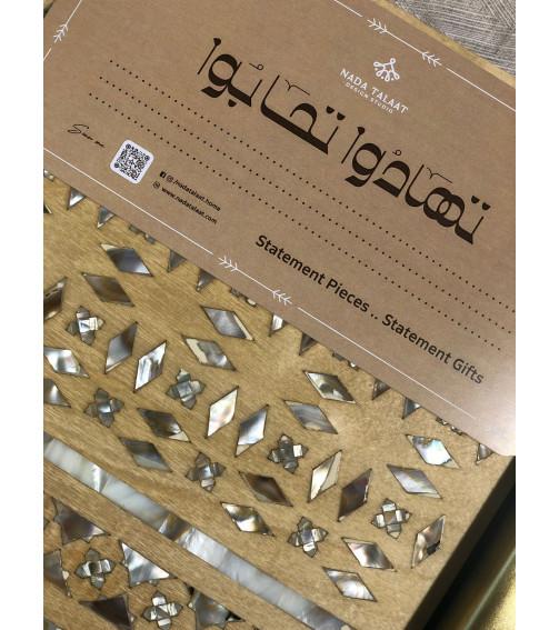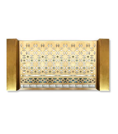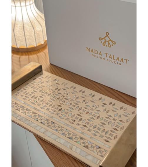 Inspired from the iconic walls of Morocco and the Zillij handicraft. Made from a wooden base with natural mother of pearl inlay. Complimented with handmade brass handles to complete that luxury look. Zillij tray is what you need to give your home a sense of artistic luxury.